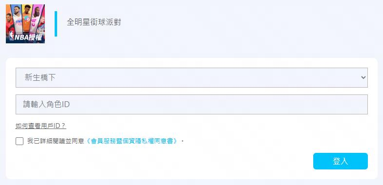 1. 進入 街球支付(https://ican.tw/ksuCF) 輸入遊戲內角色數字ID > 勾選下方同意《會員服務暨個資隱私權同意書》> 點擊「登入」。